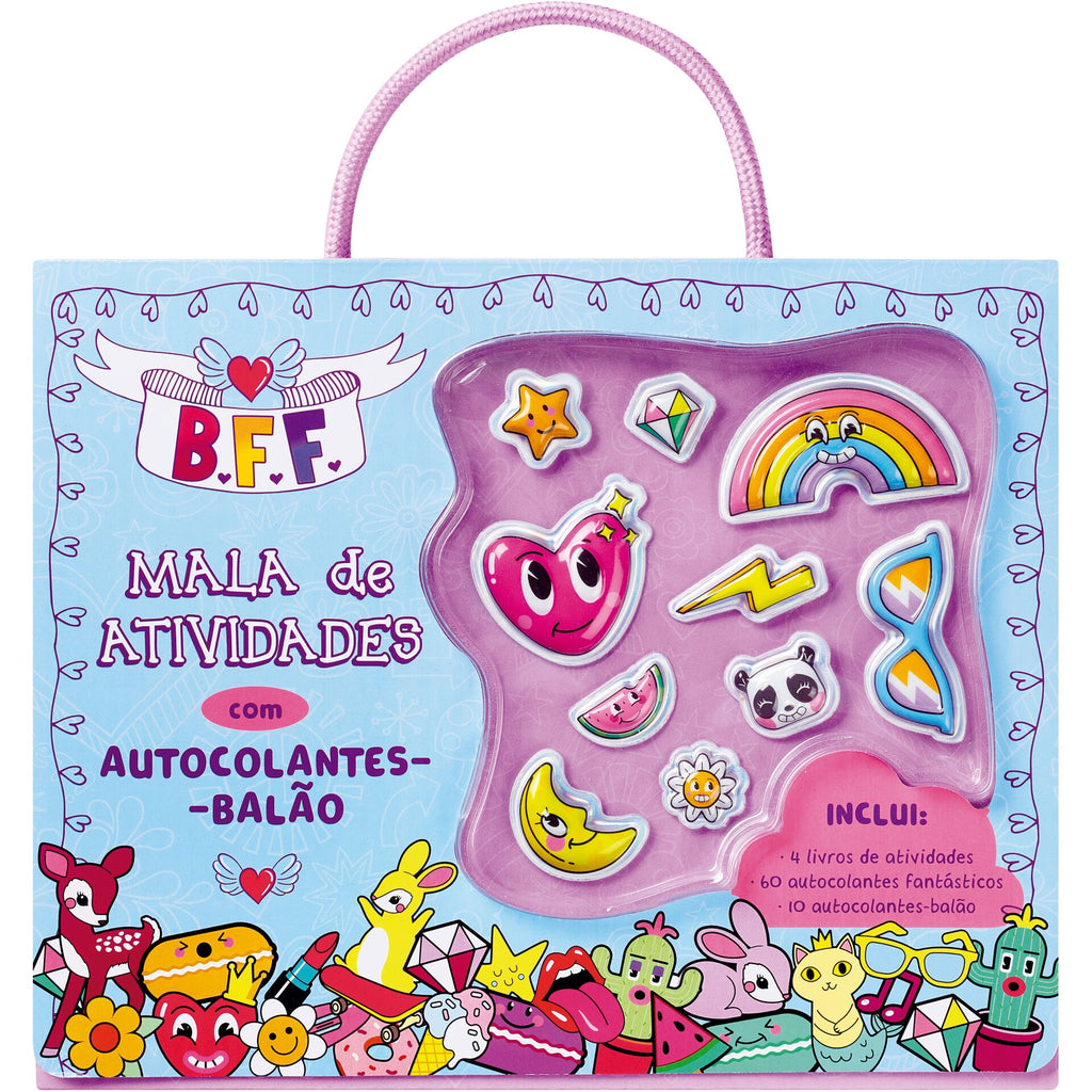 Sinopse: Leva esta incrível mala de atividades para onde quer que vás e cria memórias divertidas com os teus amigos e amigas! Lá dentro, encontrarás mais de sessenta autocolantes e quatro livros repletos de labirintos, páginas para colorir, puzzles e muito mais!