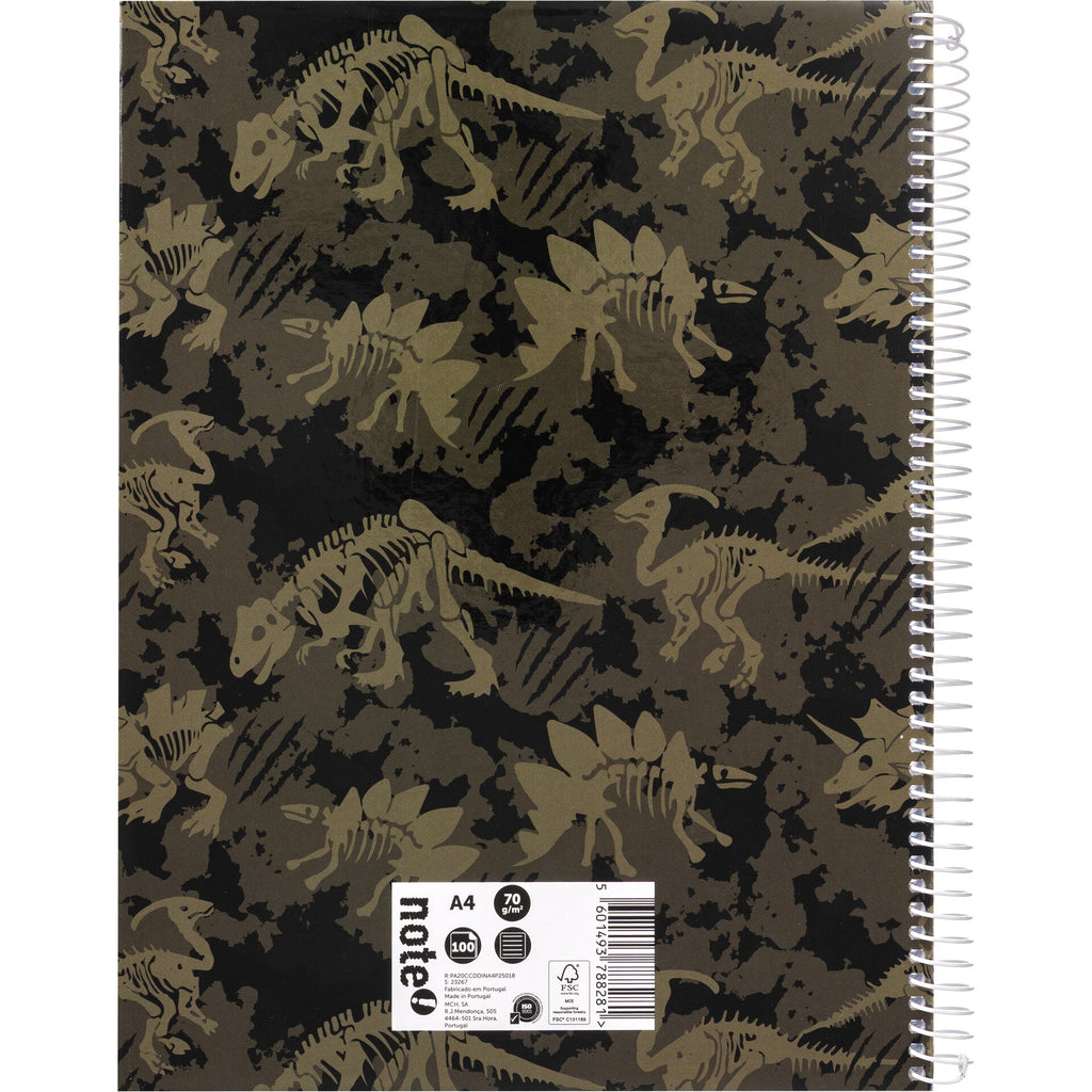 Caderno Espiral A4 Capa Dura Pautado 100 Folhas T-Rex Note!
