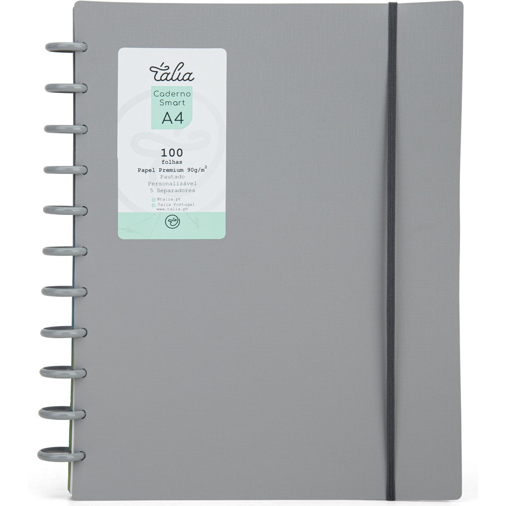 Caderno Smart A4 com Elástico 100 Folhas Cinzento Talia