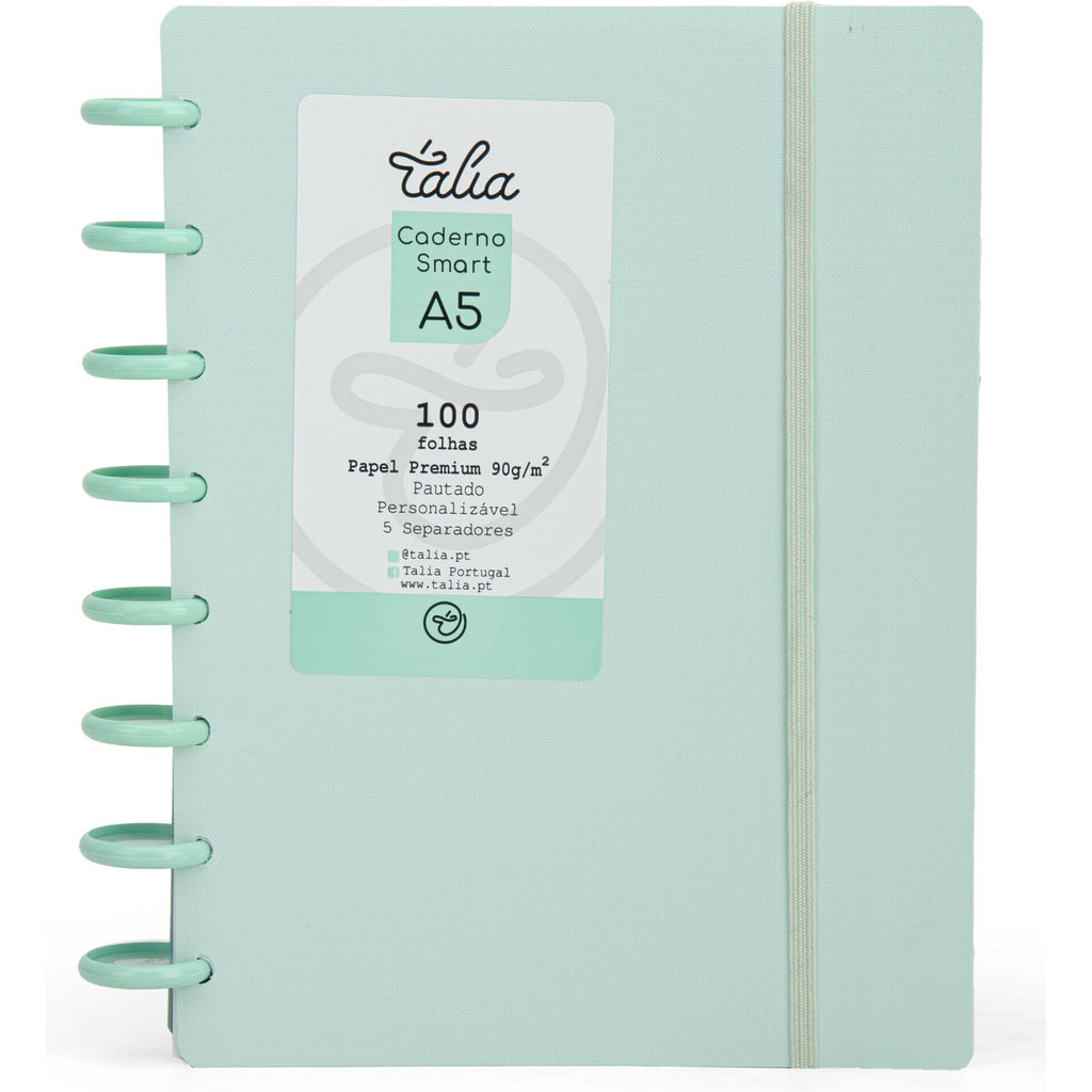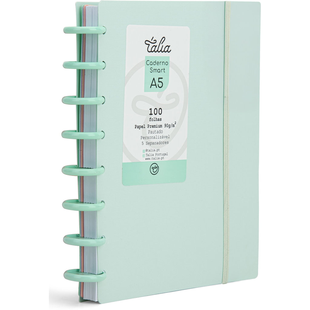 Caderno Smart A5 com Elástico 100 Folhas Verde Pastel Talia