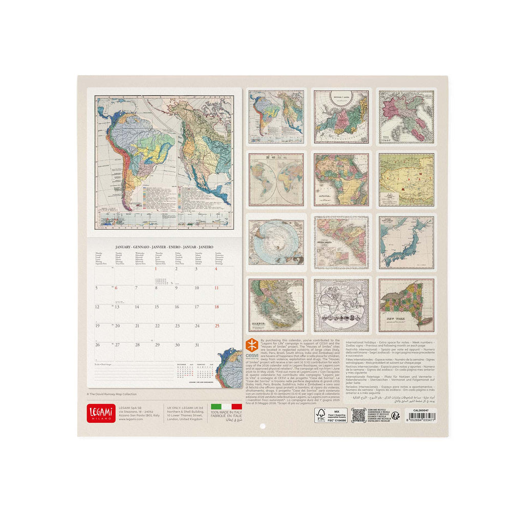 Calendário 2026 - Vintage Maps 30X29