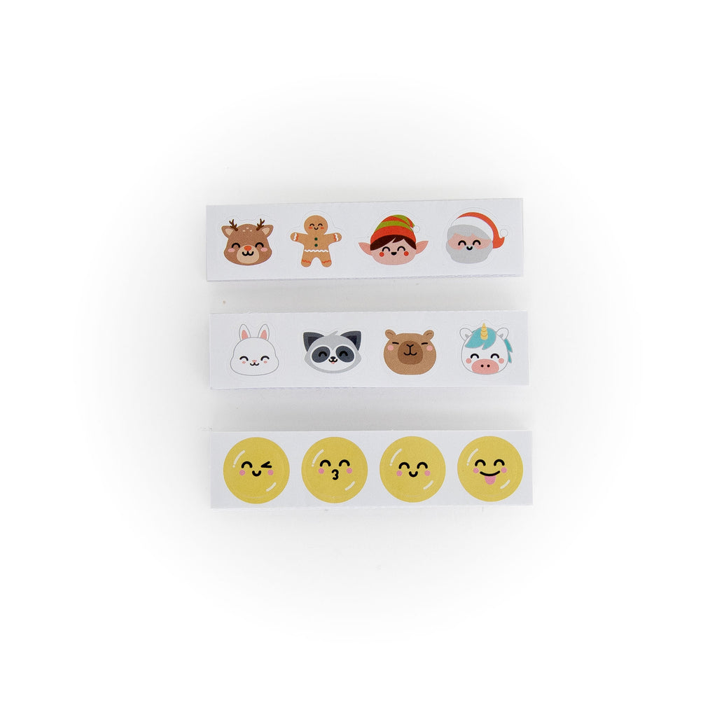 3 folhas de autocolantes (emoticons, personagens de Natal e animais)