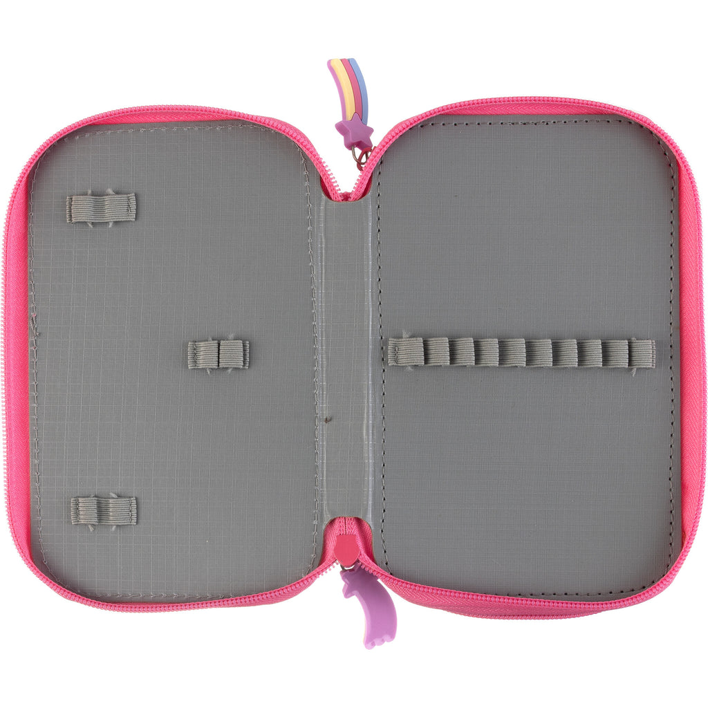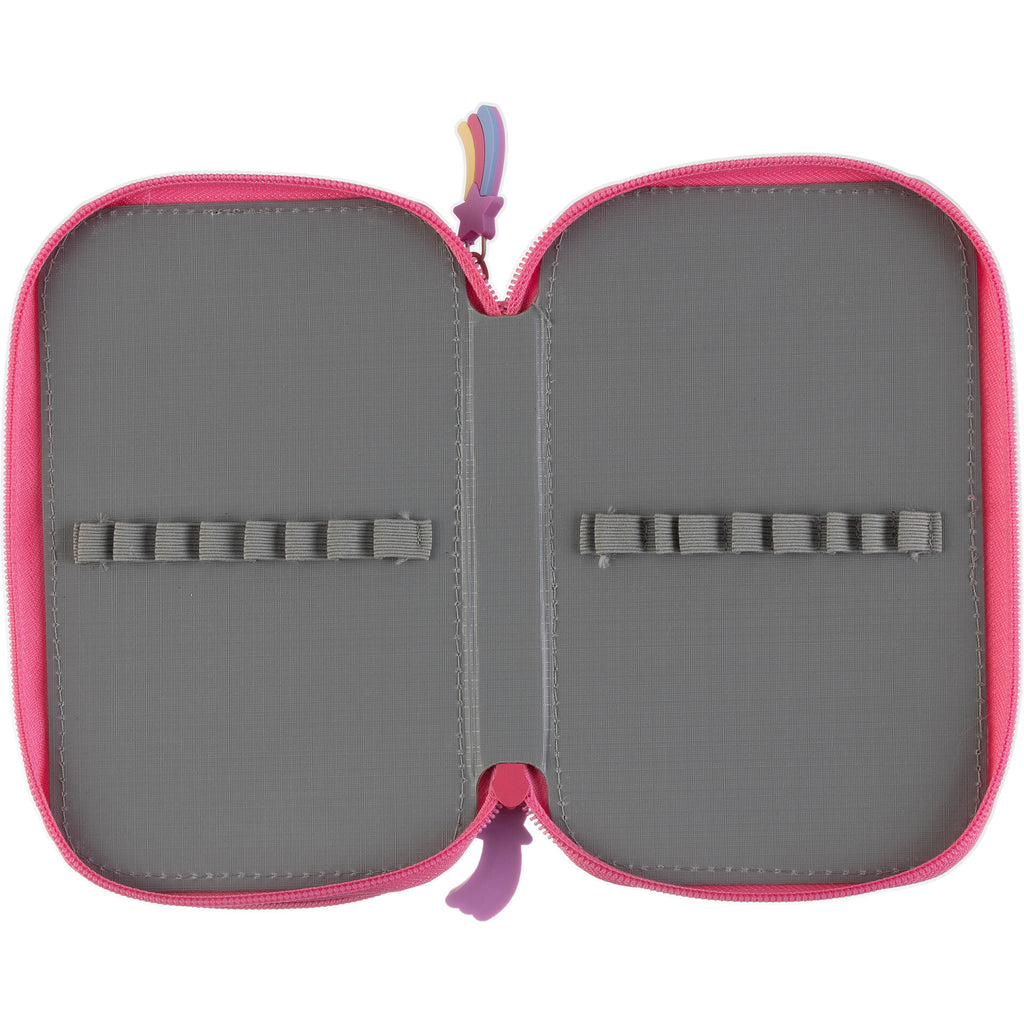 O estojo da coleção Unicorn é ideal para organizar todo o material escolar com praticidade e magia. Com duas divisórias interiores bem estruturadas, oferece espaço suficiente para lápis, canetas, borrachas e afins, mantendo tudo no lugar graças aos elásticos internos. O exterior exibe um design colorido com unicórnio sorridente e detalhes florais, perfeito para quem adora sonhar alto. O fecho de correr resistente e o tamanho compacto tornam-no fácil de transportar na mochila. Um acessório funcional e cheio de fantasia para o dia-a-dia escolar!