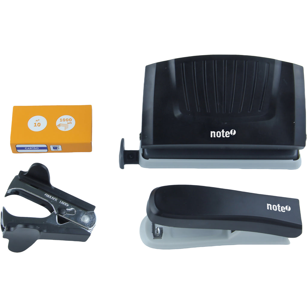 O conjunto de escritório é a solução prática e eficiente para organização de documentos no dia a dia. Inclui um furador com capacidade até 12 folhas, agrafador compatível com agrafos nº 10, tira-agrafos resistente e recarga de 1000 agrafos. Perfeito para equipar secretárias de estudantes e profissionais, este kit oferece funcionalidade e durabilidade num só pack essencial.