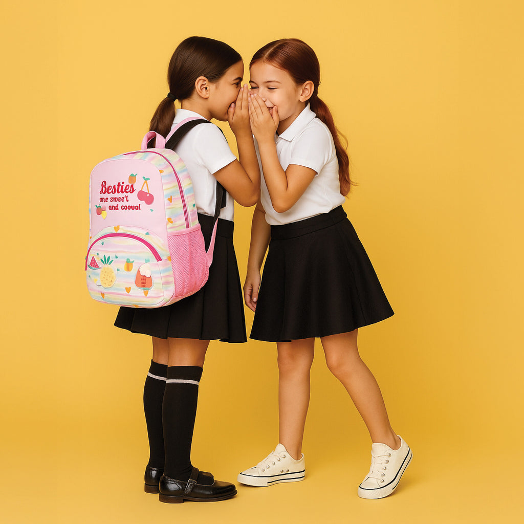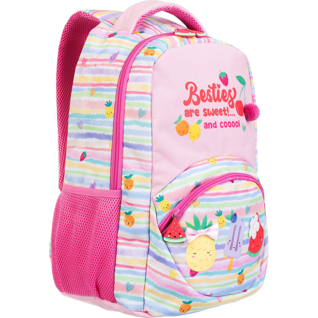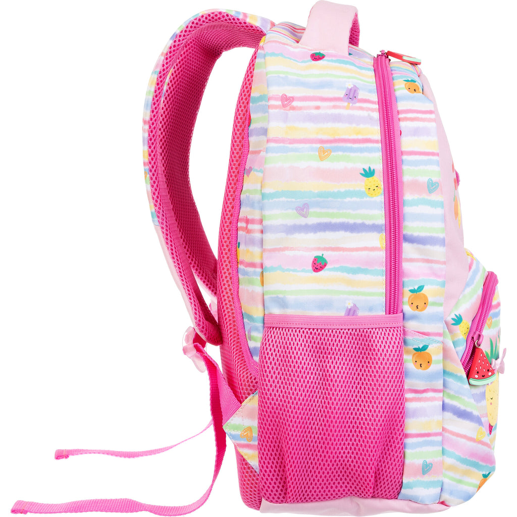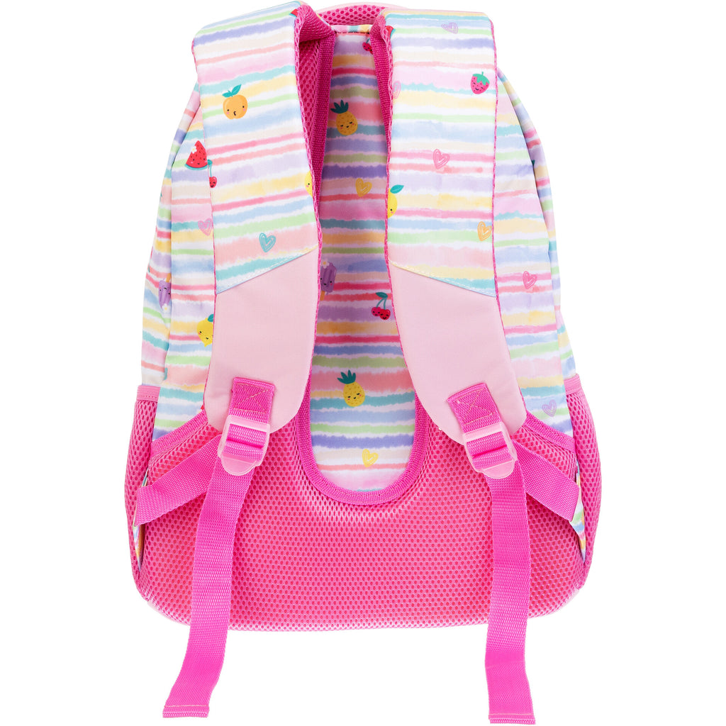 Dê mais cor e frescura aos dias com a mochila divertida e cheia de sabor! O design alegre com frutas sorridentes e tons pastel promete encantar os mais pequenos. Com alças acolchoadas ajustáveis, bolsos laterais em rede e compartimentos espaçosos, é ideal para a escola, passeios ou atividades. Prática, confortável e com muito estilo¿ porque aprender também pode ser doce e divertido!