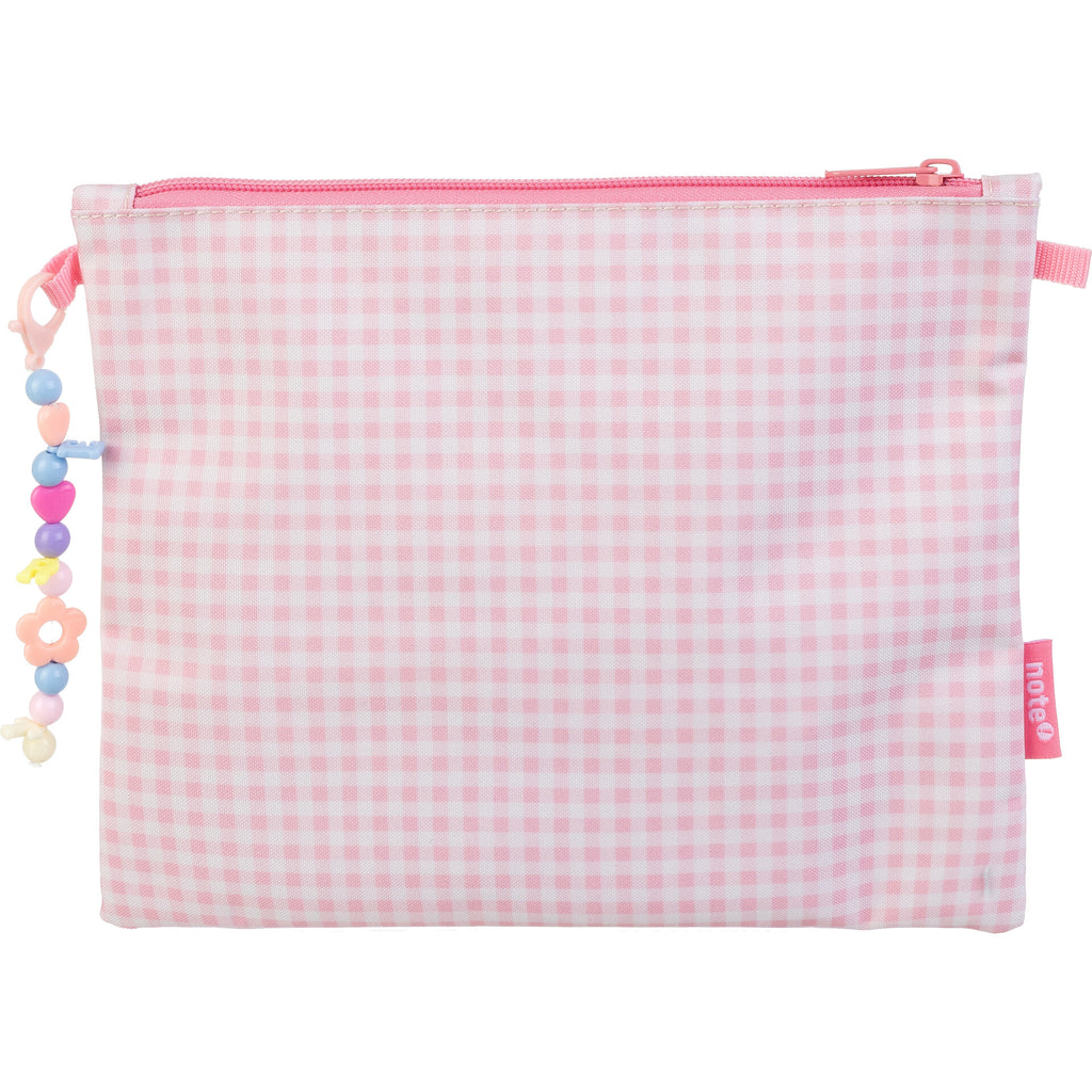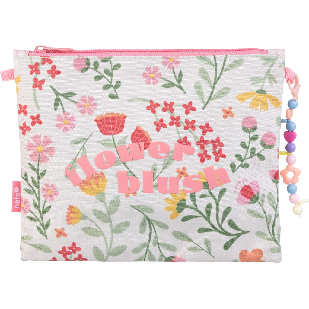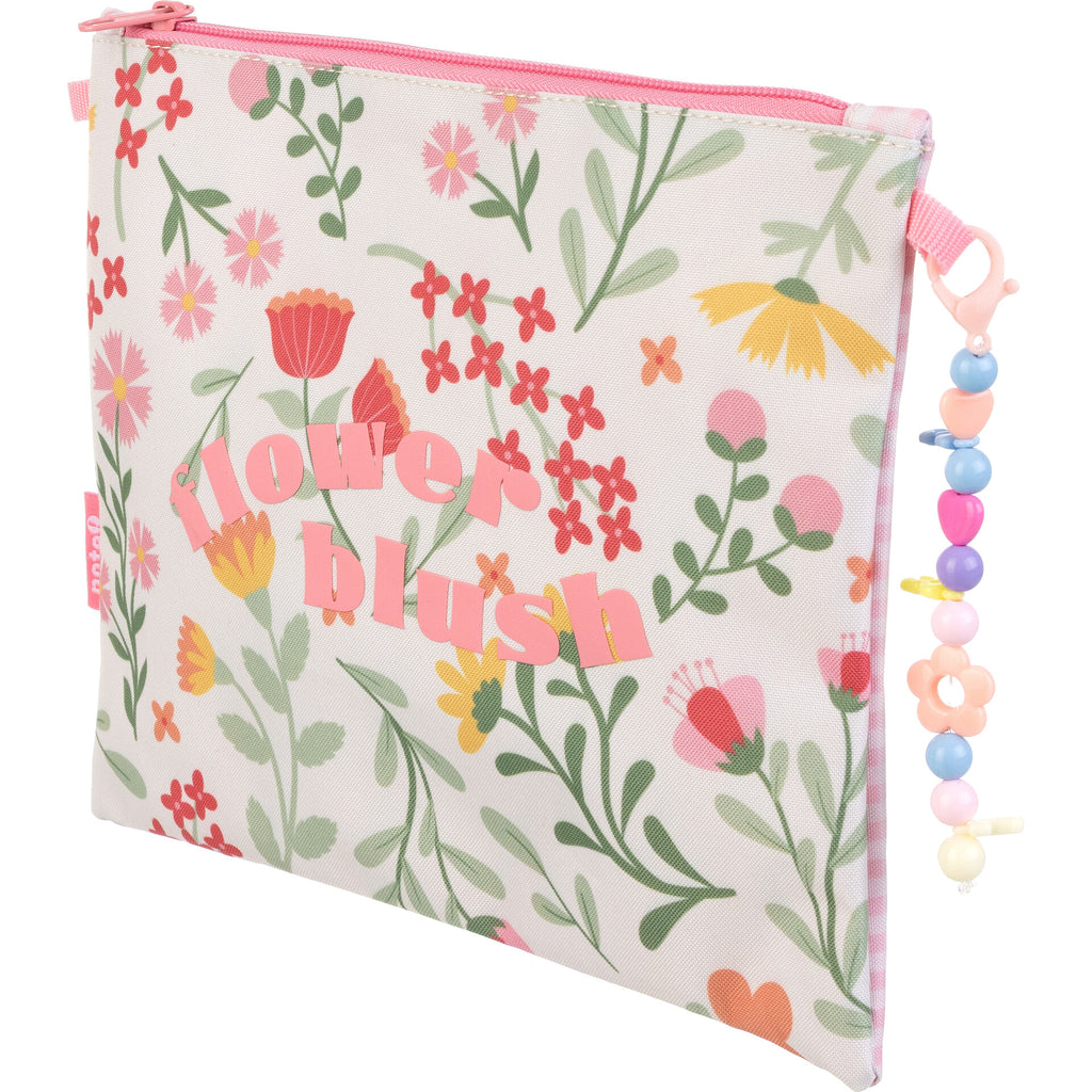 A necessaire Flower Blush é um acessório prático e encantador, perfeito para transportar os essenciais do dia a dia. Com um lado decorado com um alegre padrão floral e o outro com padrão vichy rosa, esta bolsa combina romantismo e frescura. O fecho com pendente de missangas coloridas adiciona um toque divertido e feminino. Leve e fina, é ideal para guardar maquilhagem, material escolar ou pequenos objetos pessoais, mantendo tudo organizado com muito estilo.