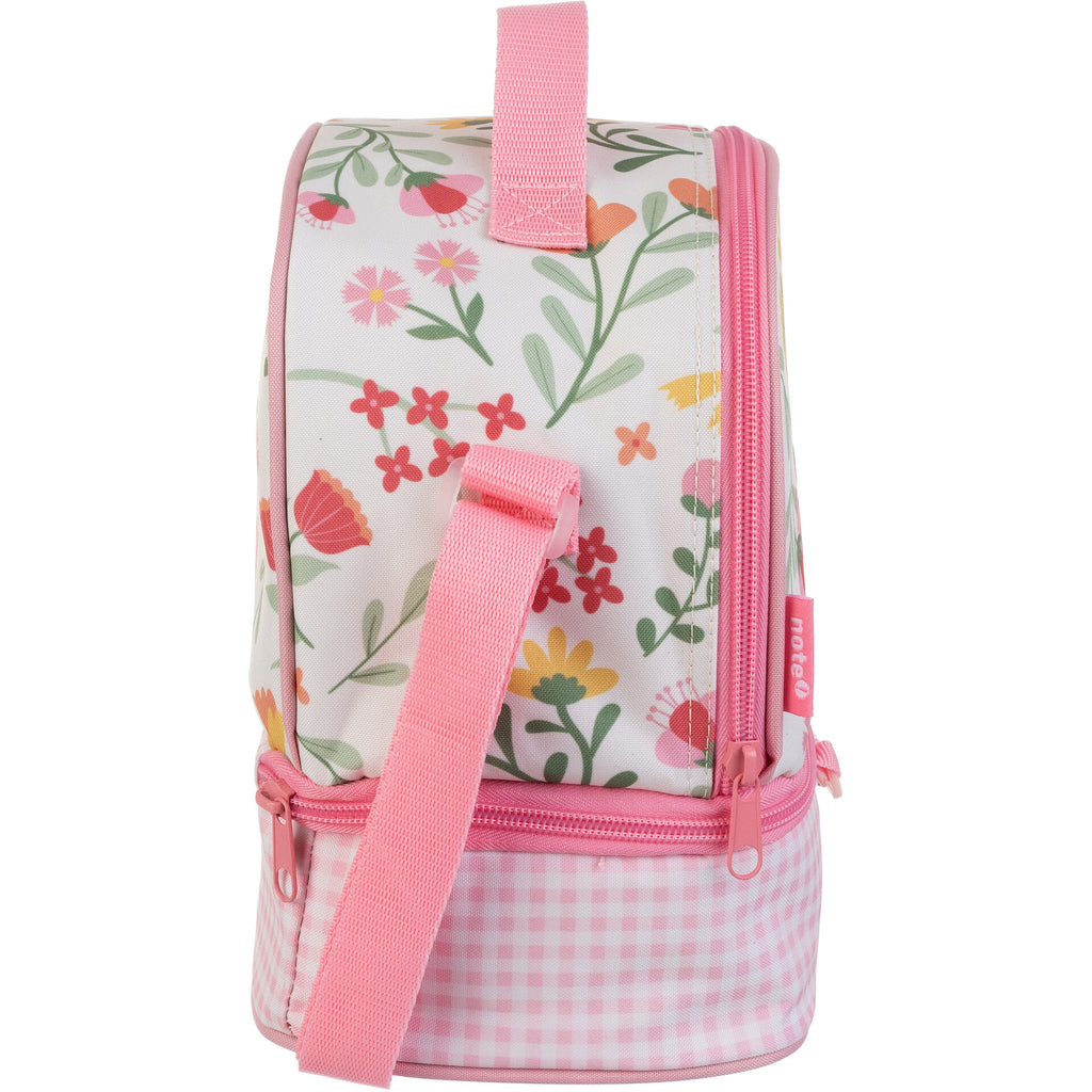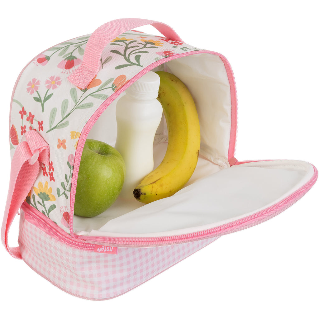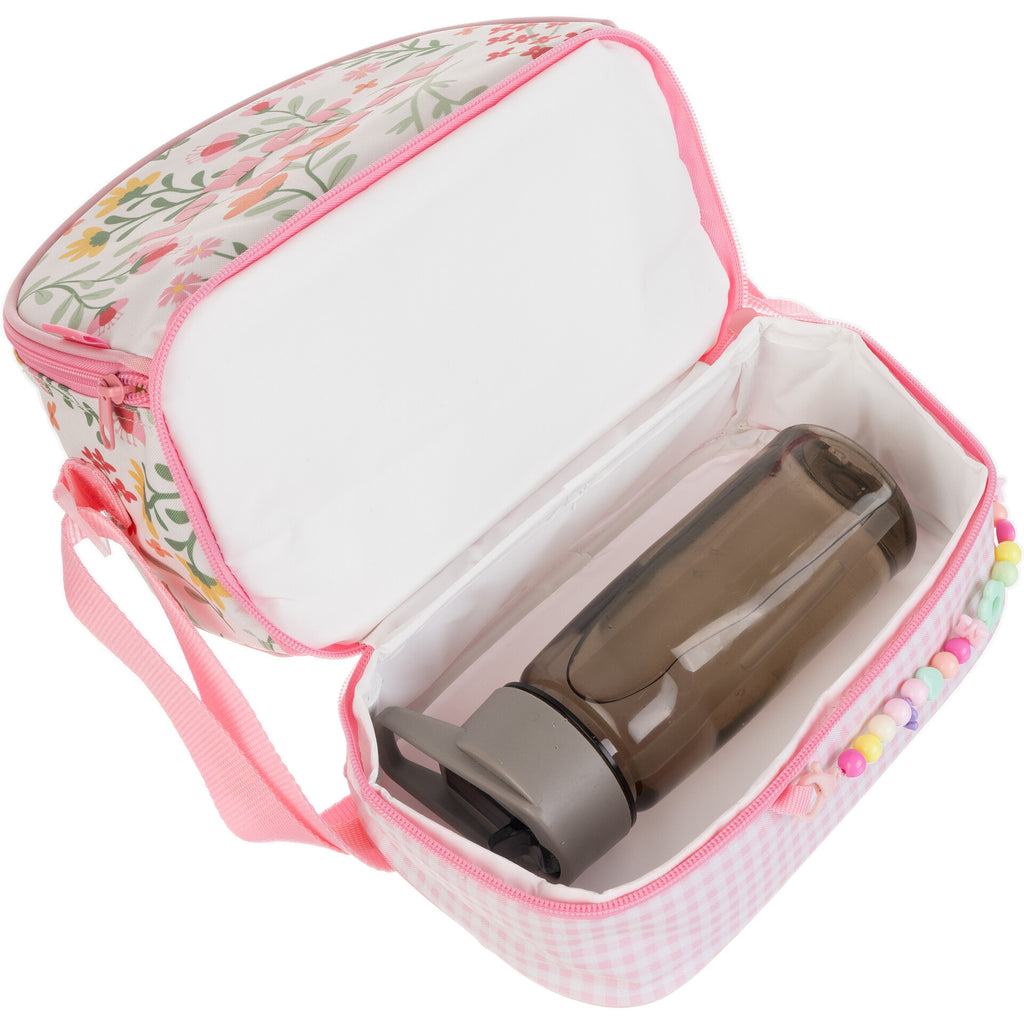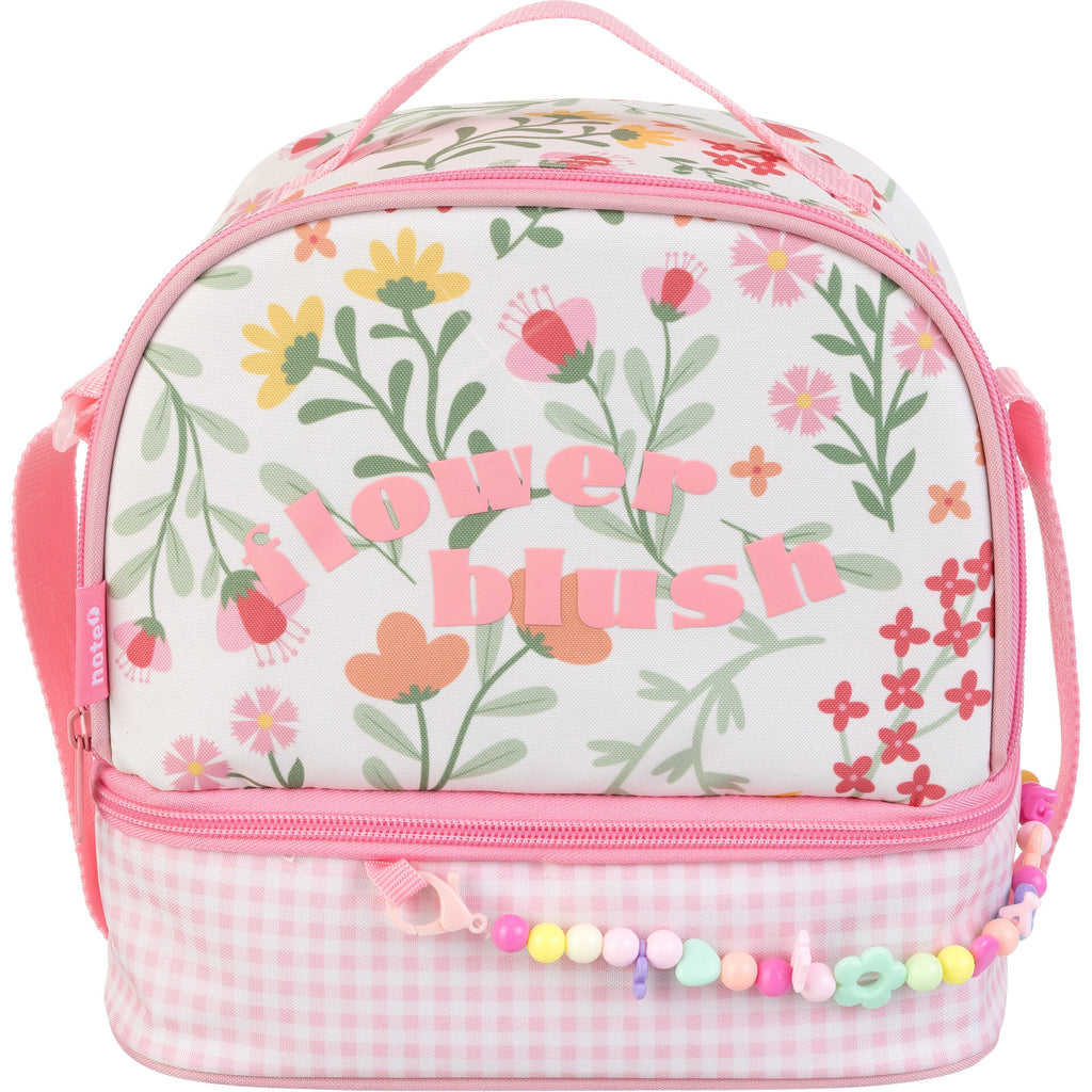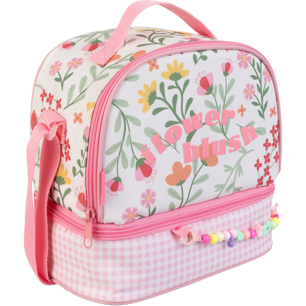O saco de lanche Flower Blush combina funcionalidade com um design encantador. Com flores delicadas e cores suaves sobre um fundo branco, esta lancheira destaca-se pela base em padrão vichy rosa e pelo divertido detalhe de missangas coloridas. Oferece dois compartimentos espaçosos com fecho em zíper, ideais para manter os alimentos organizados e frescos. A alça ajustável facilita o transporte, tornando-o perfeito para acompanhar as refeições das mais pequenas com muito estilo e ternura.