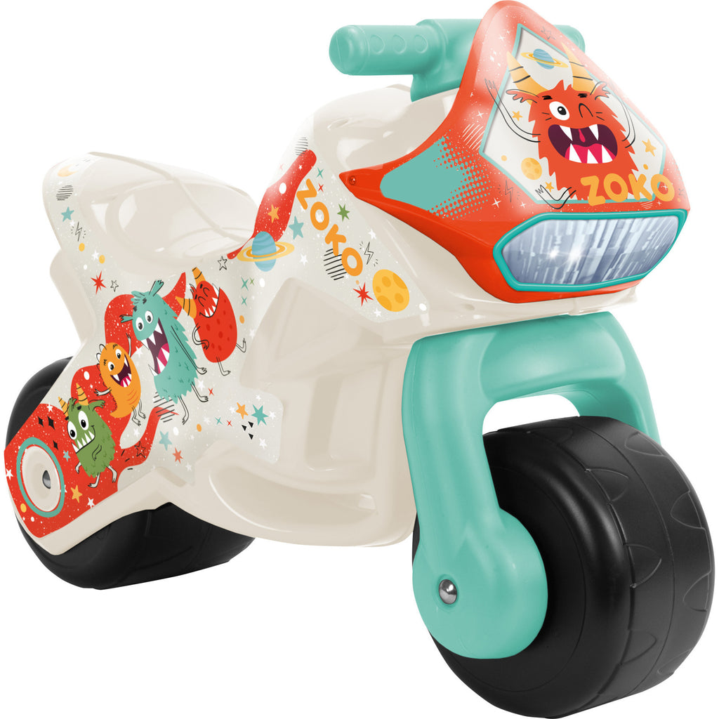 Mota Ride-on Twin Dessert Zoko, recomendado para crianças a partir dos 18 meses. Para estimular a motricidade dos nossos pequeninos, nada melhor do que utilizar este fantástico ride-on com uma decoração colorida e divertida. Concebido de forma ergonómica para tornar a condução confortável e adaptada às necessidades das crianças. Esta mota de empurrar é fabricada em plástico de alta qualidade e a sua decoração brilhante e multicolorida é permanente e impermeável, graças ao sistema de rotulagem IML, que fixa os autocolantes ao plástico durante o processo de fabrico. Tem rodas largas de plástico para maior estabilidade na deslocação. É 100% fabricado em Espanha e está em conformidade com as normas europeias de segurança exigidas pela UE.